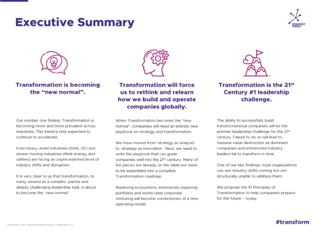 Este informe espera brindarle a usted, el lector, una comprensión más profunda, una selección de herramientas y una hoja de ruta sólida para su Transformación exitosa. En esencia, este Manual del CEO espera guiar su viaje de transformación.